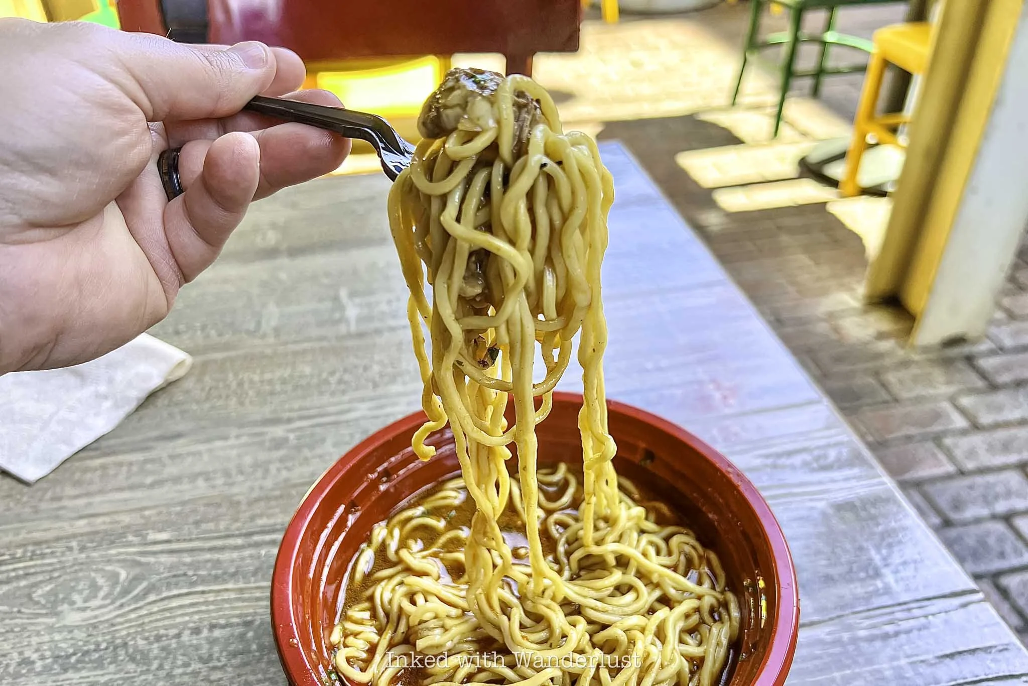 The broth is rich with a slight kick of spice and the deep, slow-cooked birria is incredibly flavorful and tender. It blends surprisingly well with the soft ramen noodles, which soak up all that flavor. Overall it's a warm, satisfying dish that's packed with flavor and redefines what theme park food can be.