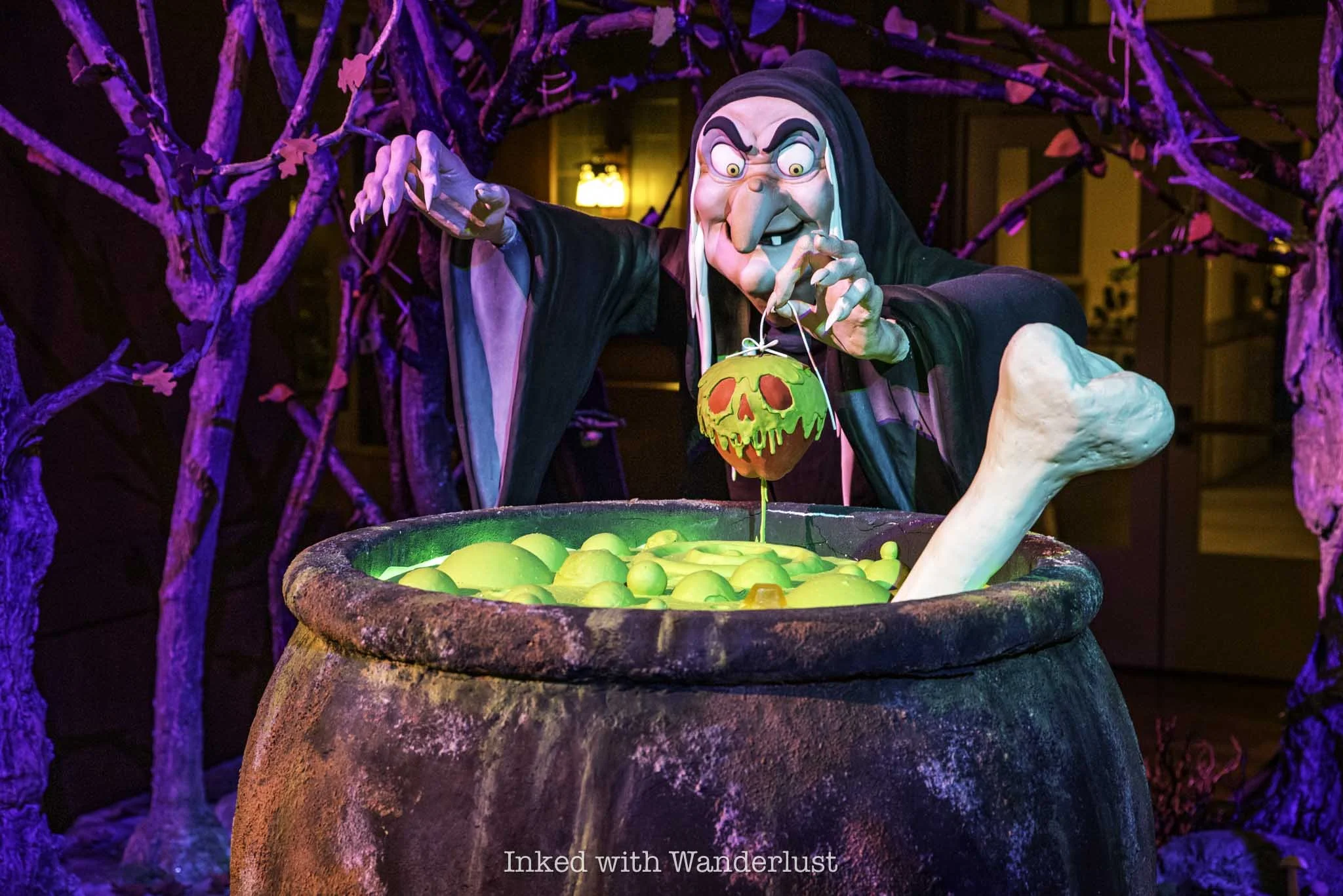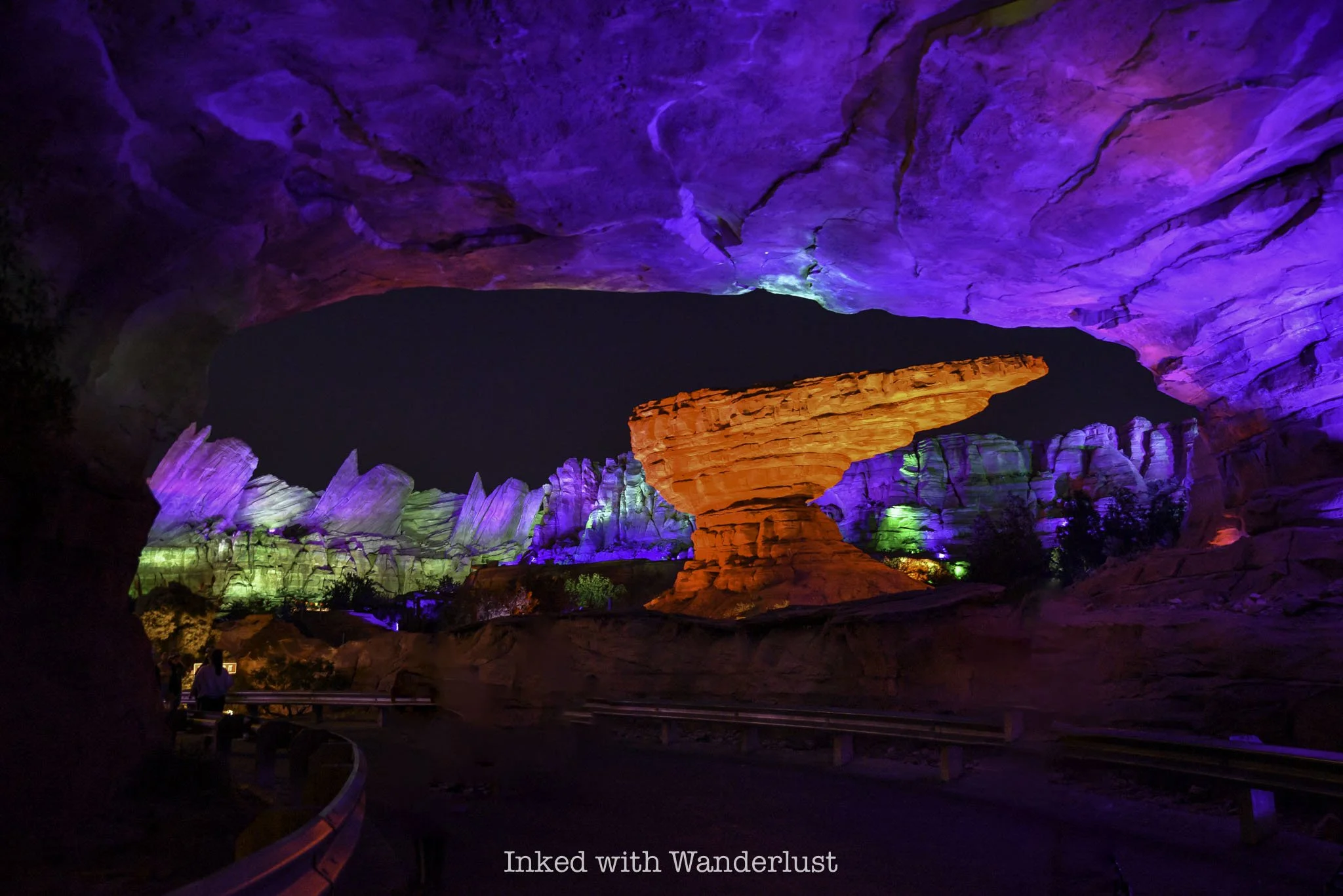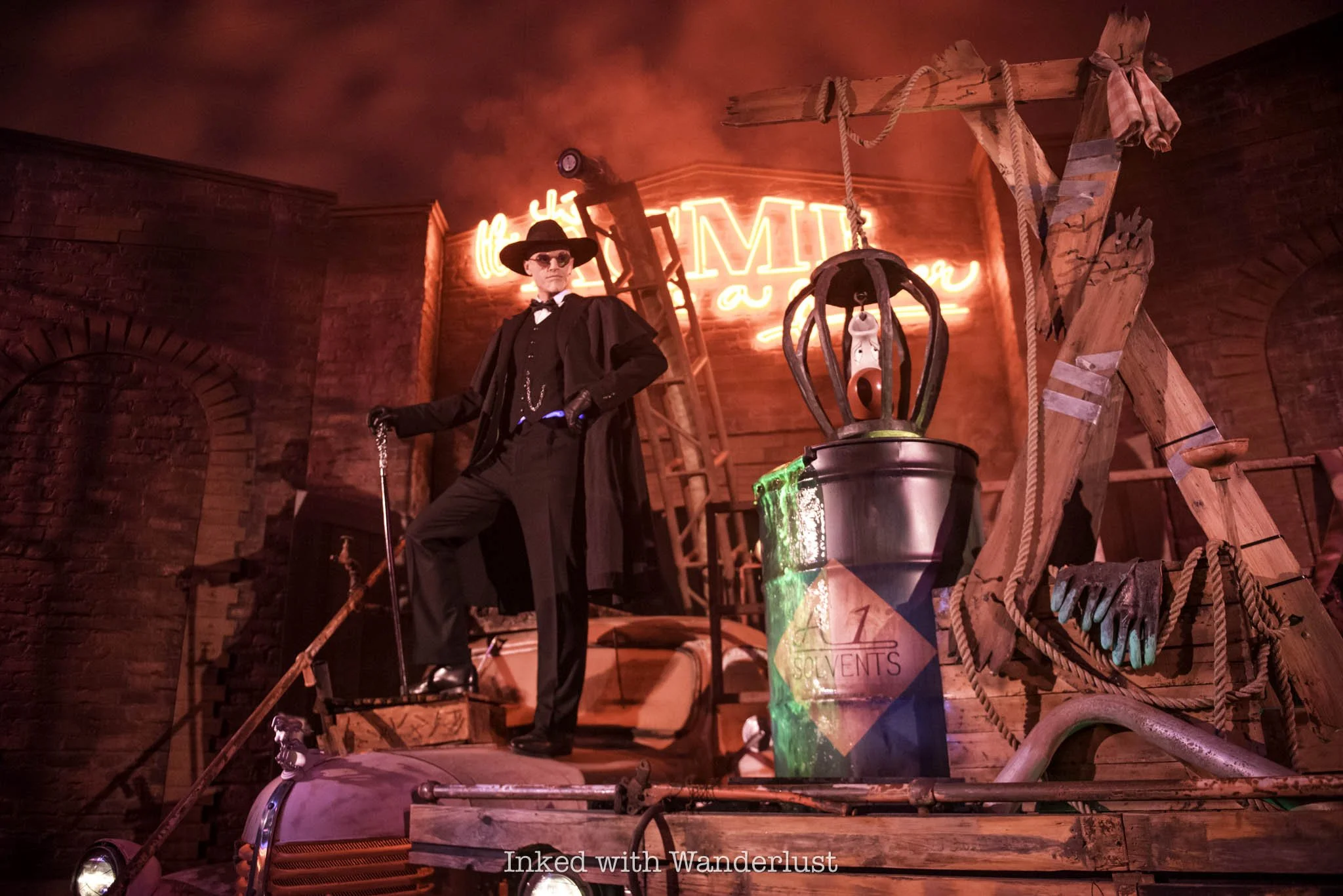 In Disney California Adventure, Buena Vista Street is heavily adorned in bat-themed decor and at night, is lit up in purple and green lighting. However, Cars Land is the real draw, as just about every square inch of the land, including the attractions, are decorated.