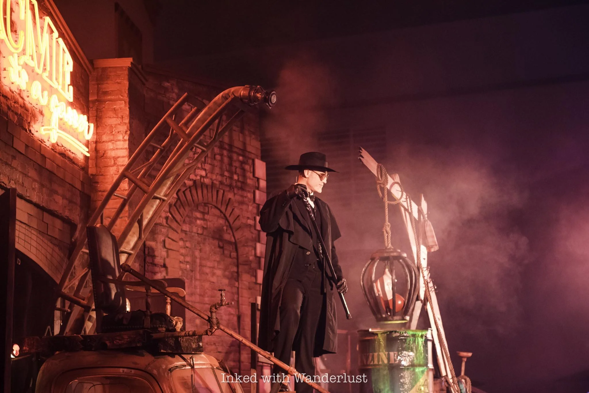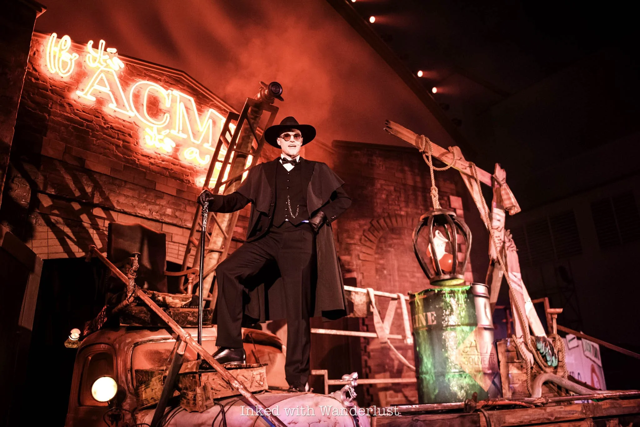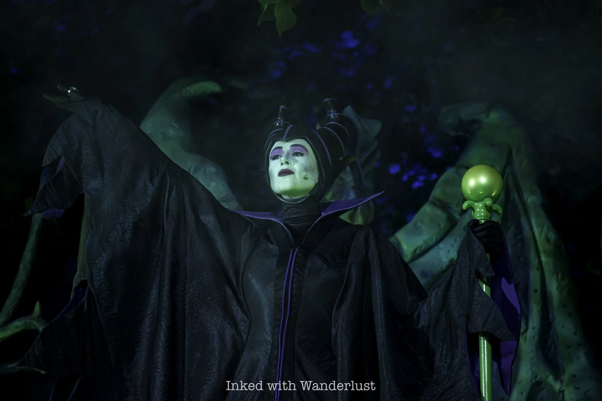 In Disney California Adventure, Buena Vista Street is heavily adorned in bat-themed decor and at night, is lit up in purple and green lighting. However, Cars Land is the real draw, as just about every square inch of the land, including the attractions, are decorated.