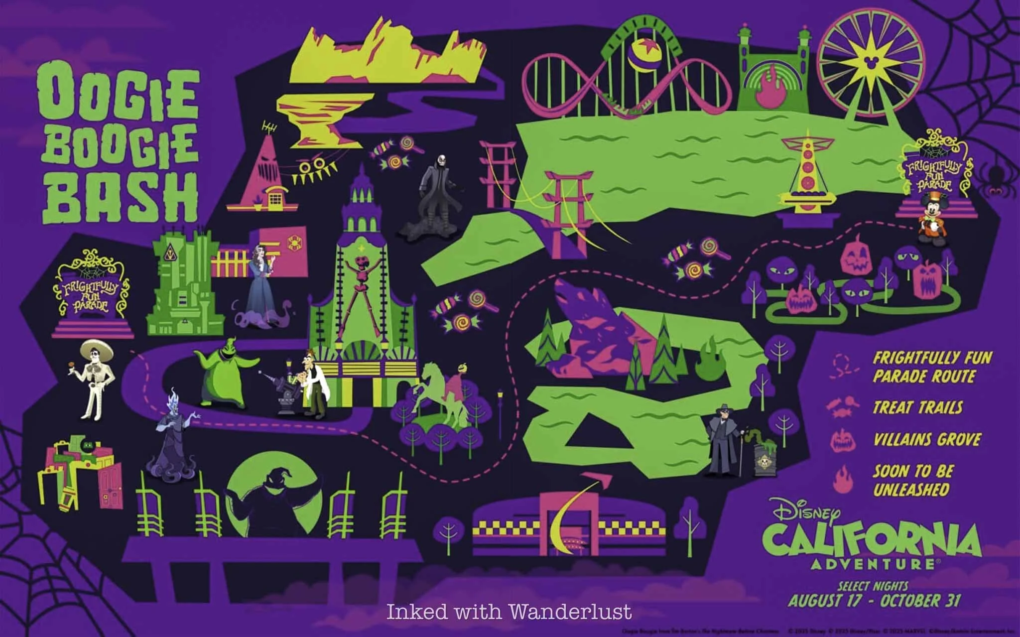 Oogie Boogie Bash hosts a variety of exclusive offerings, including treat trails featuring rare Disney villains, additional character meet and greets, the Frightfully Fun Parade, Villains Grove, special food and drink offerings, and more.