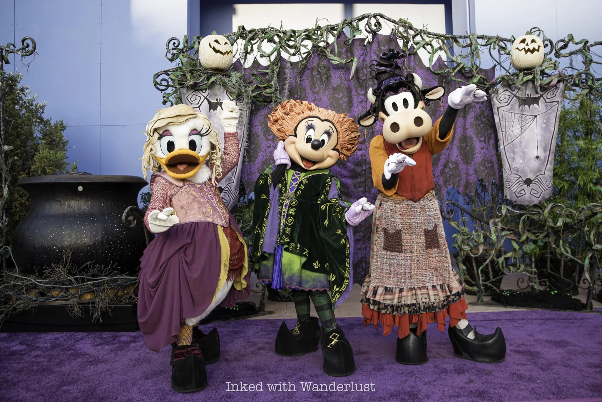 The Halloween decor continues outside of the parks and into the Downtown Disney District. Throughout the district, starting at the fountain adjacent to the tram loading area and extending towards the west end, you’ll find several figures of Mickey and Friends dressed in their Halloween bests, in addition to the Lonesome Ghosts.