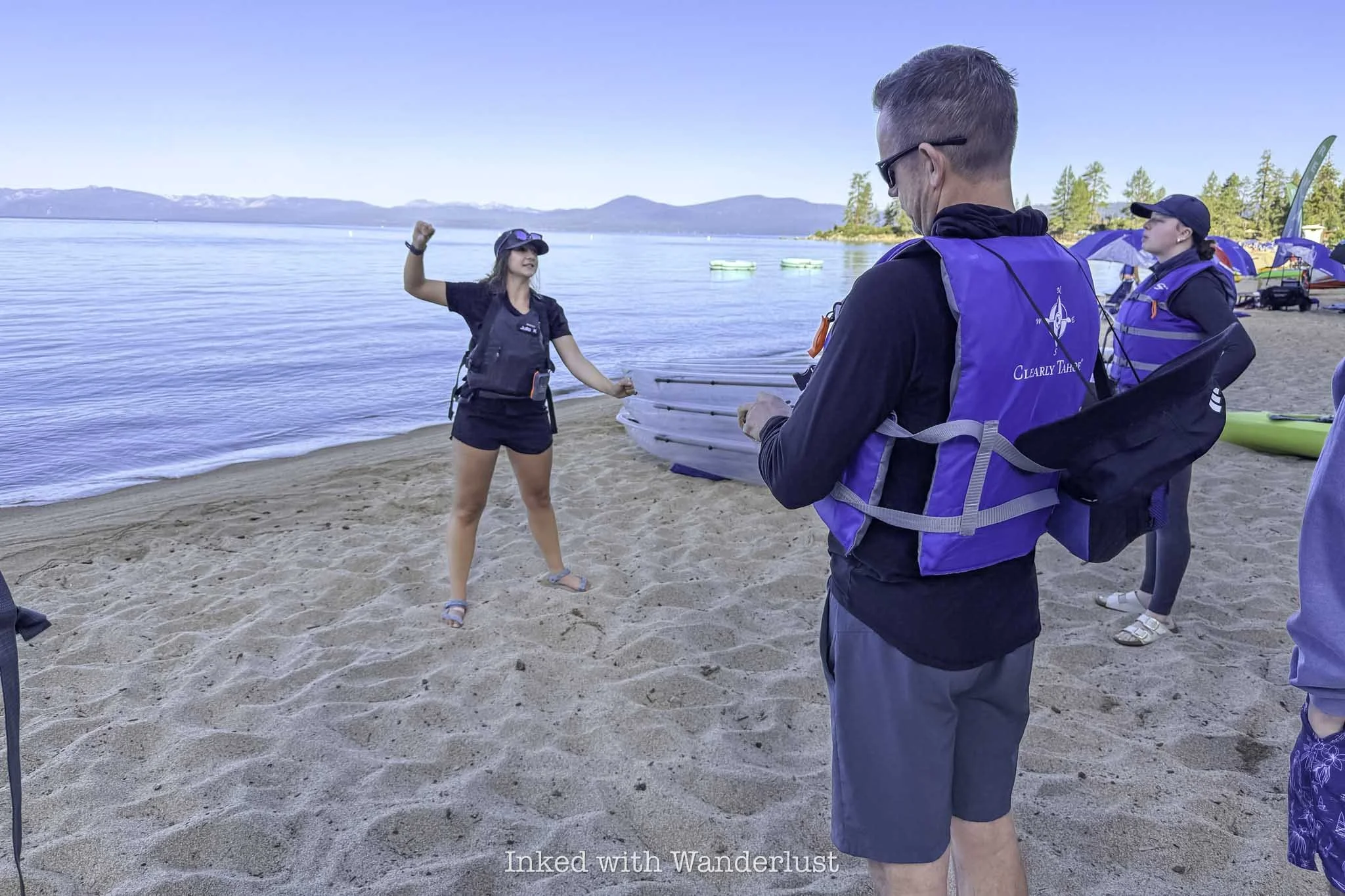 The Clearly Tahoe office is located just across from Starbucks and is in the same building as the Sage Leaf Cafe restaurant. When you arrive, you’ll fill out your waiver (if you haven’t already), be given a goodie bag, a dry bag, and be fitted for a life vest.