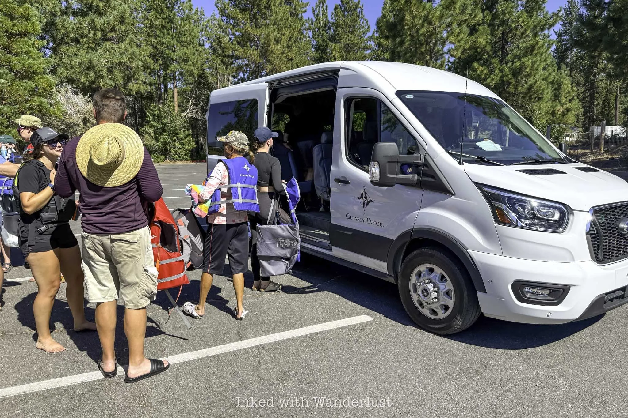 Once everybody has checked in, your driver (ours was Dave) will escort the group to the Clearly Tahoe shuttle van to take you to Sand Harbor Beach State Park - where your tour officially begins. There was 8 in our group and there was just enough room in the shuttle for us.