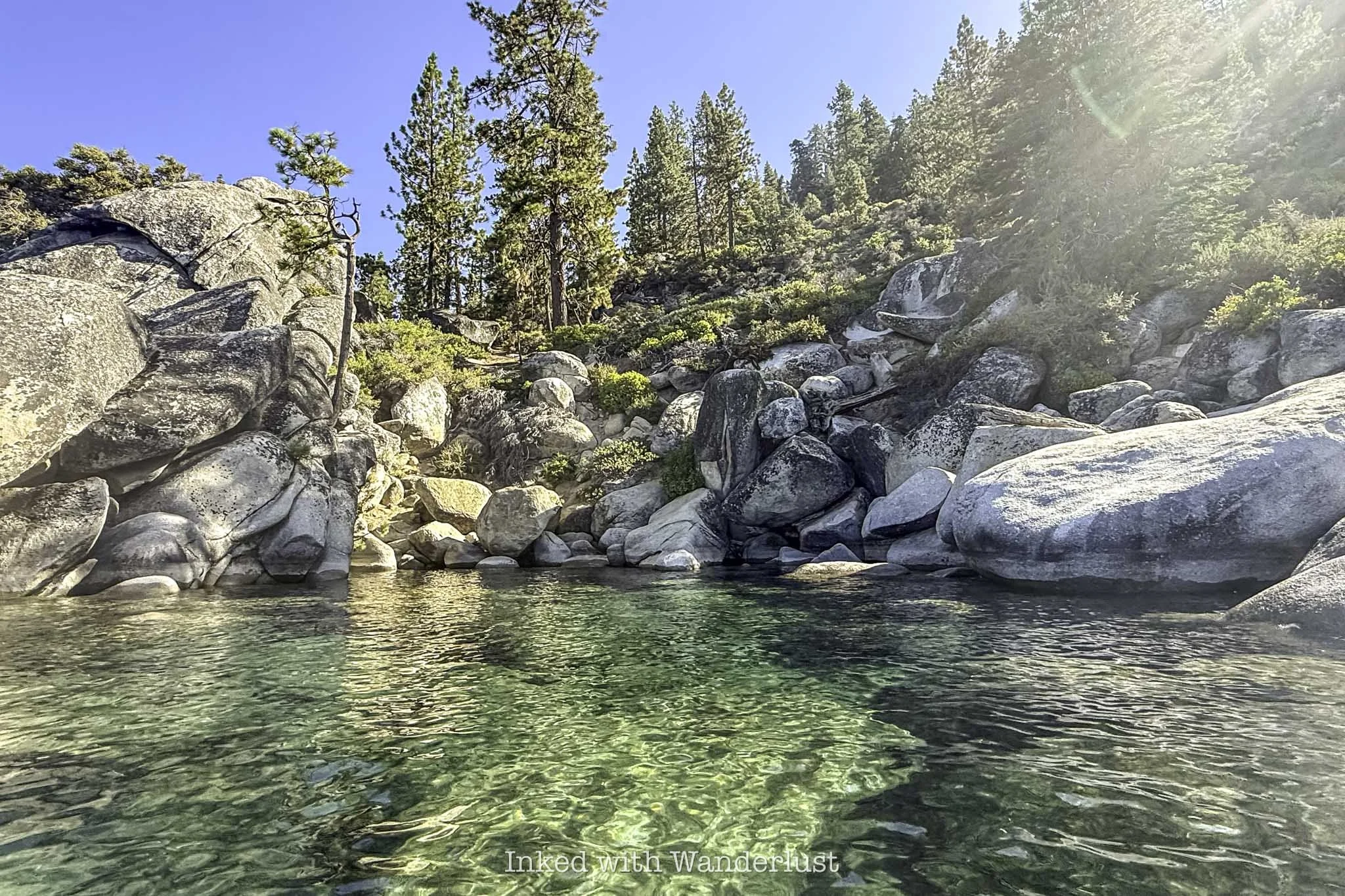 To reach Hidden Beach, you’ll need to hike for about a mile on the Tahoe East Shore Trail.