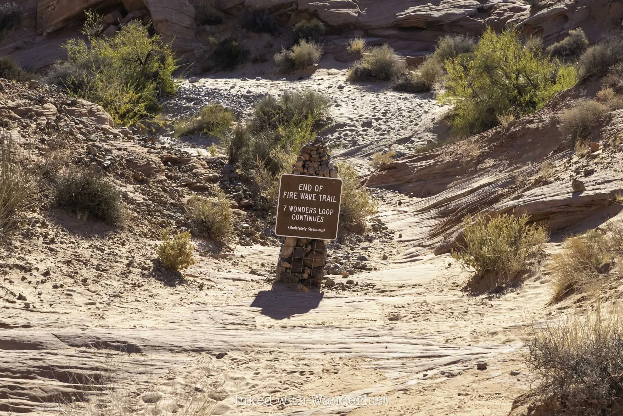 Just beyond Fire Wave, you’ll notice a pile of rocks with a sign atop indicating the end of the Fire Wave Trail. That same sign also marks the extension of the Seven Wonders Loop, if you have energy left over, that is.
