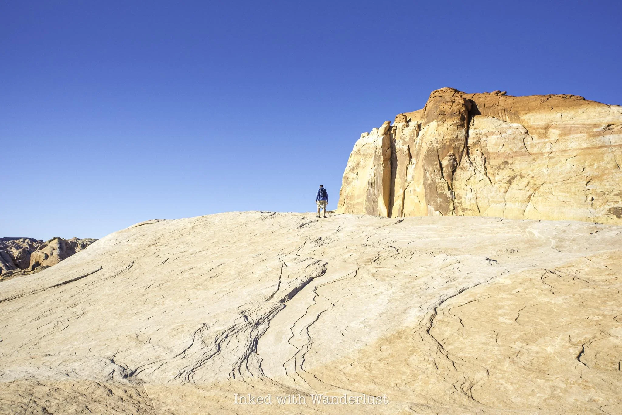 At Fire Wave is where the official trail ends. Simply turn back around and head in the same direction you came to your car. From there, continue driving north to hike White Domes Loop, an equally beautiful trail, or drive south to Mouse’s Tank Trail through Petroglyph Canyon. Or…